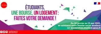 Les demandes de dossiers sont ouvertes depuis le 20 janvier et peuvent être réalisées jusqu’au 15 mai. En prévision de la prochaine année universitaire, étudiantes et étudiants peuvent établir leur demande de bourse, de logement ou de renouvellement en ligne exclusivement sur le site messervices.etudiant.gouv.fr.